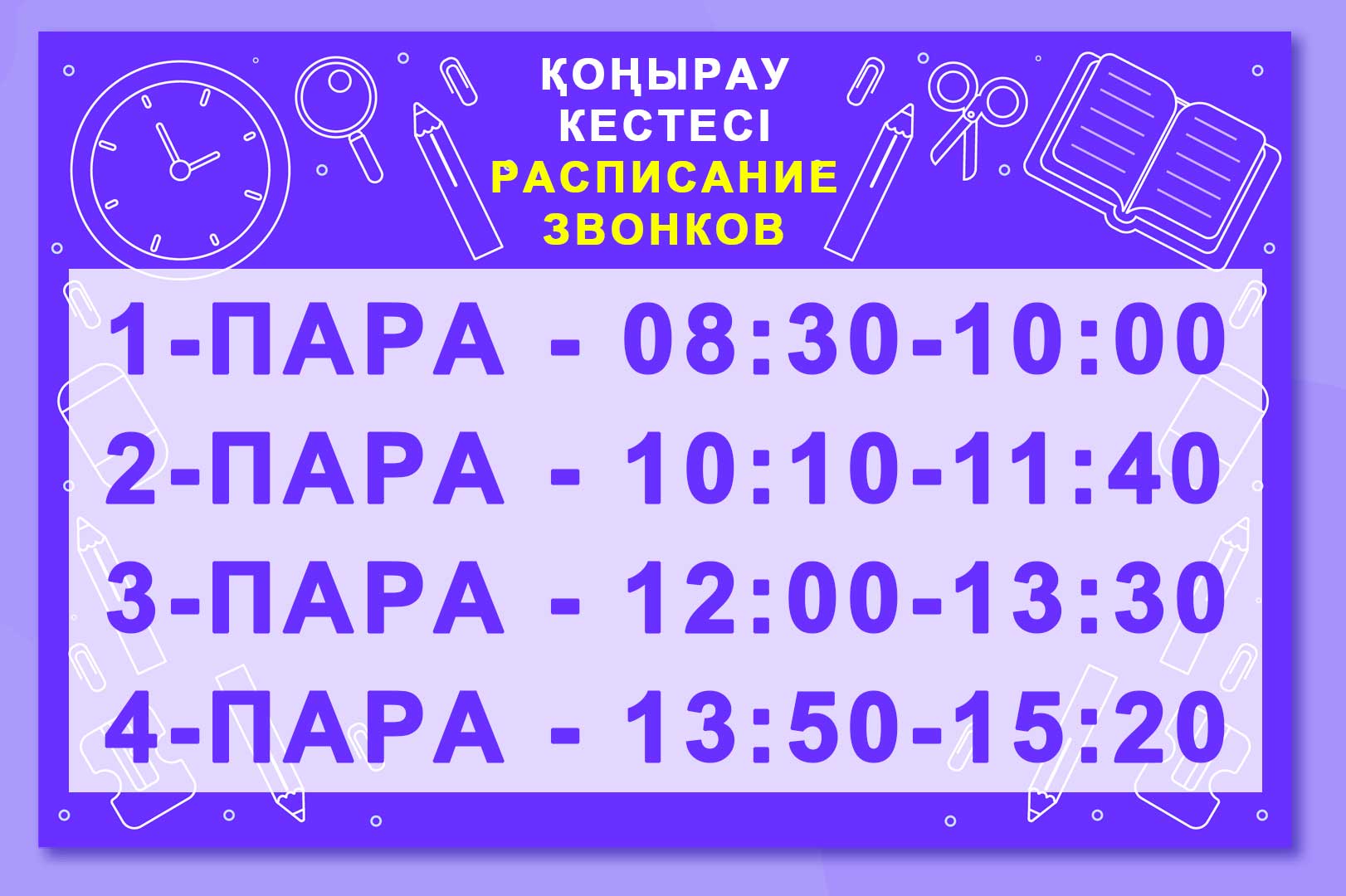 Қоңырау кестесі | Расписание звонков